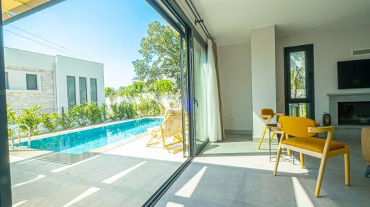 Villa Emily, Ortakent, Bodrum is a contemporary property with private swimming pool, a spacious pebble garden with patio areas and quality furnishings. This retreat allows you to get away from it all, whilst having the amenities of Ortakent village and beach within easy reach by car. You have the best of both worlds here. There is WiFi, private pool and air conditioning with this 4 bedroom, 5 bathroom villa.