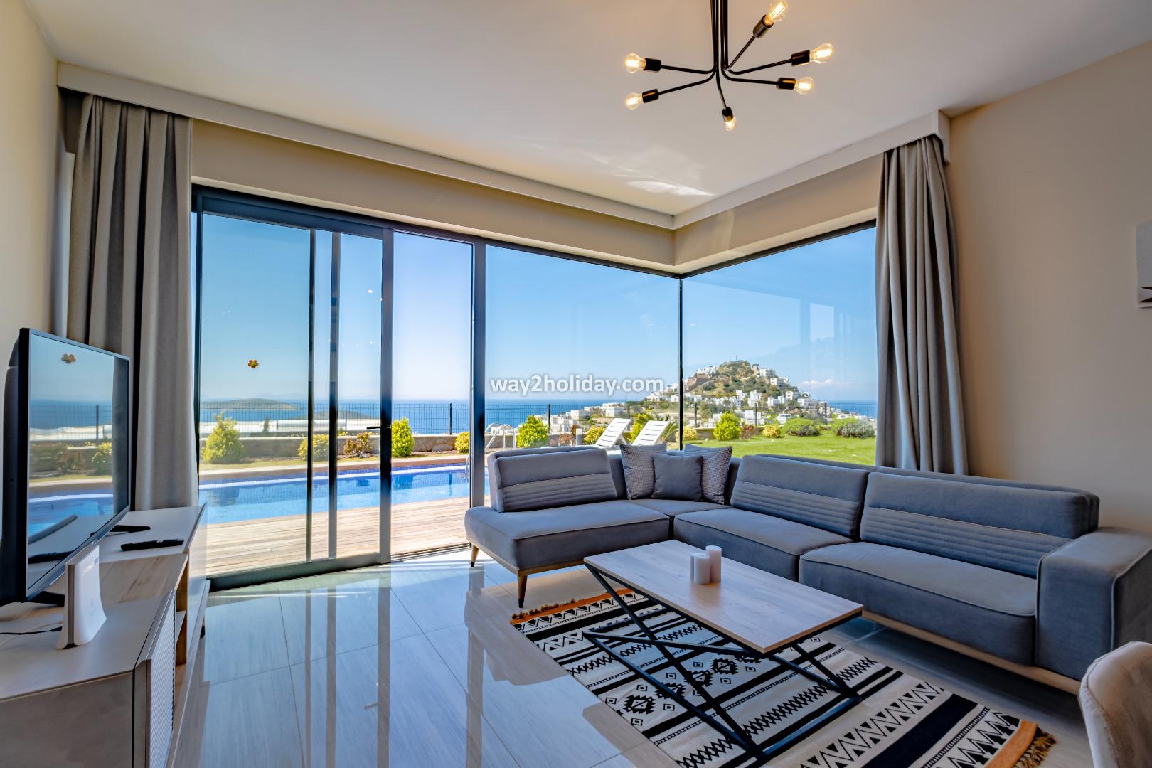 Villa Marissa is a stunning 3 bedroom villa with private pool and breathtaking sea views. The villa has a modern and contemporary finish throughout. The private pool, terrace and living room all focus on the amazing panoramic views. Located a 10minute drive from the popular resort of Yalikavak with an array of trendy bars, chic restaurants and sandy beaches. There is WIFI and air conditioning.