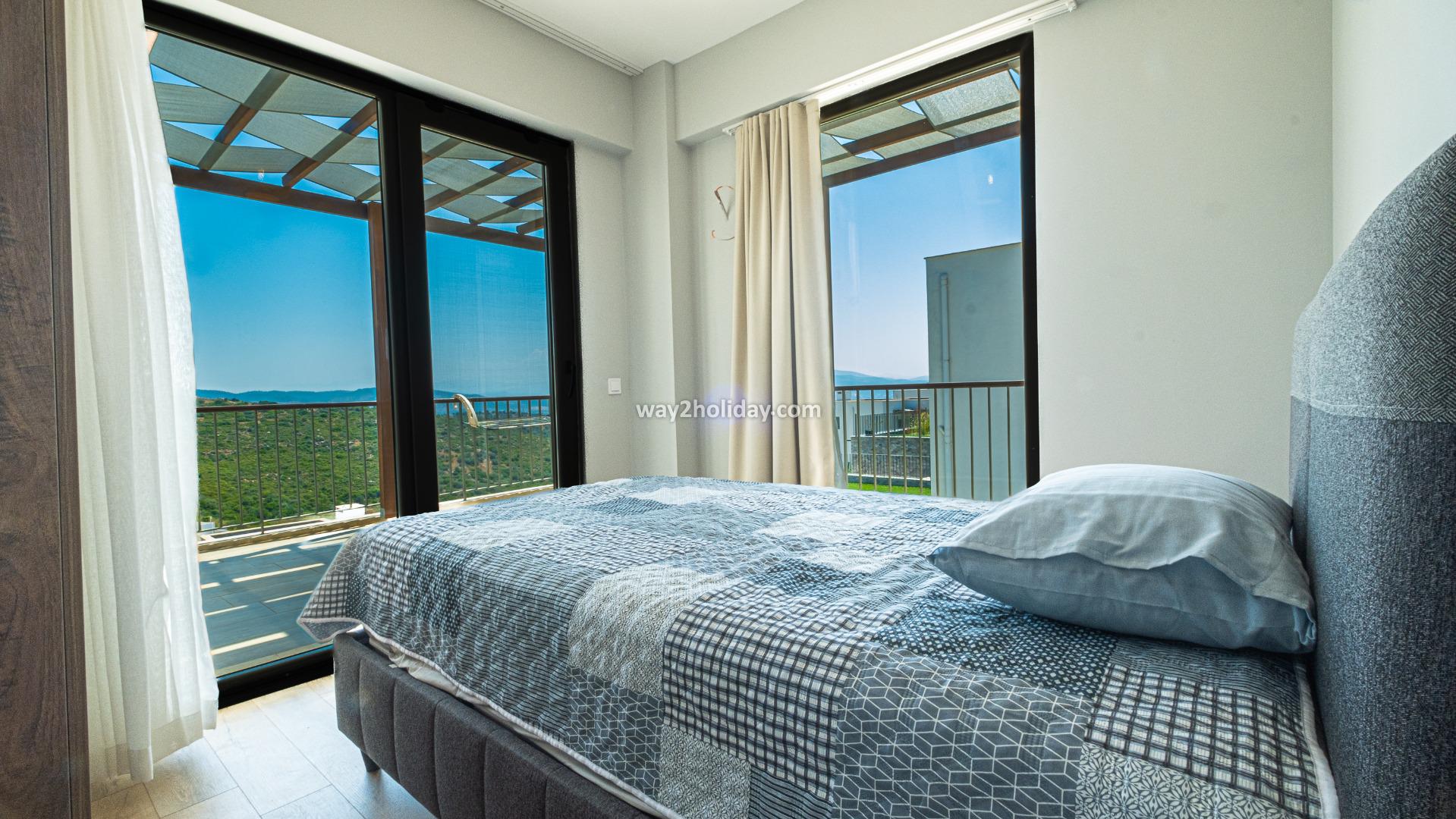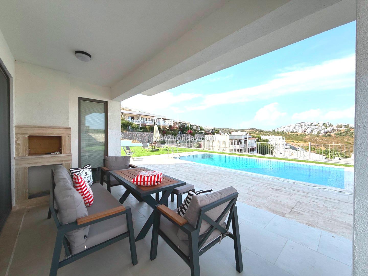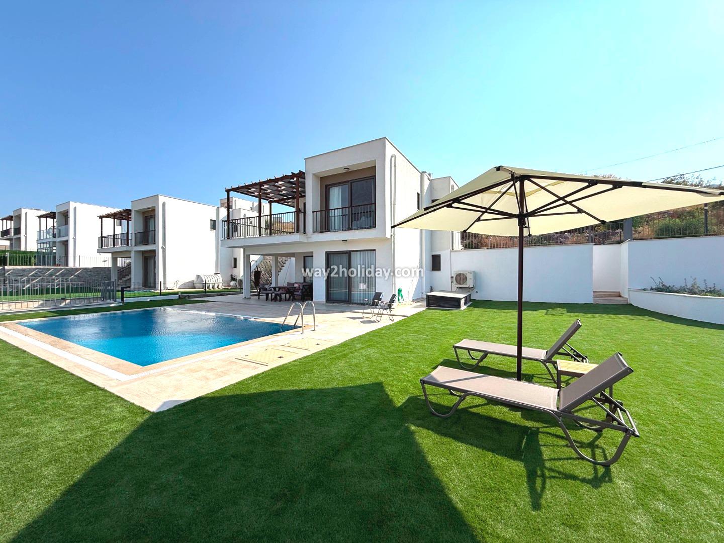 Villa Zuma is a stunning 3 bedroom property with lovely green views. The villa has a modern and contemporary finish throughout. The private pool, terrace and living room all focus on the panoramic views. Located in the countryside, close to the main Bodrum airport (15 mins drive) and 40 minutes drive from Bodrum itself, a 5 minute drive takes you to the popular village resort of Boğazici with an array of water fron restaurants, pizzarias and a sandy beach. WiFi, and air conditioning/ heating in the bedrooms, dining room, kitchen and living space are included.