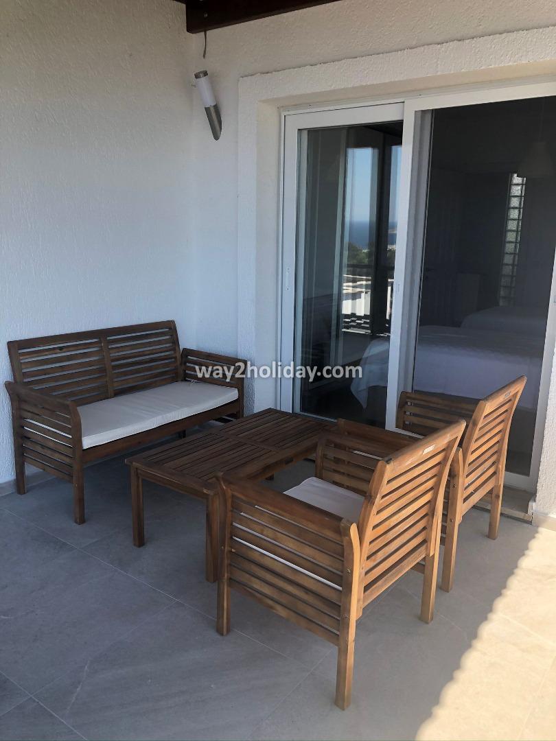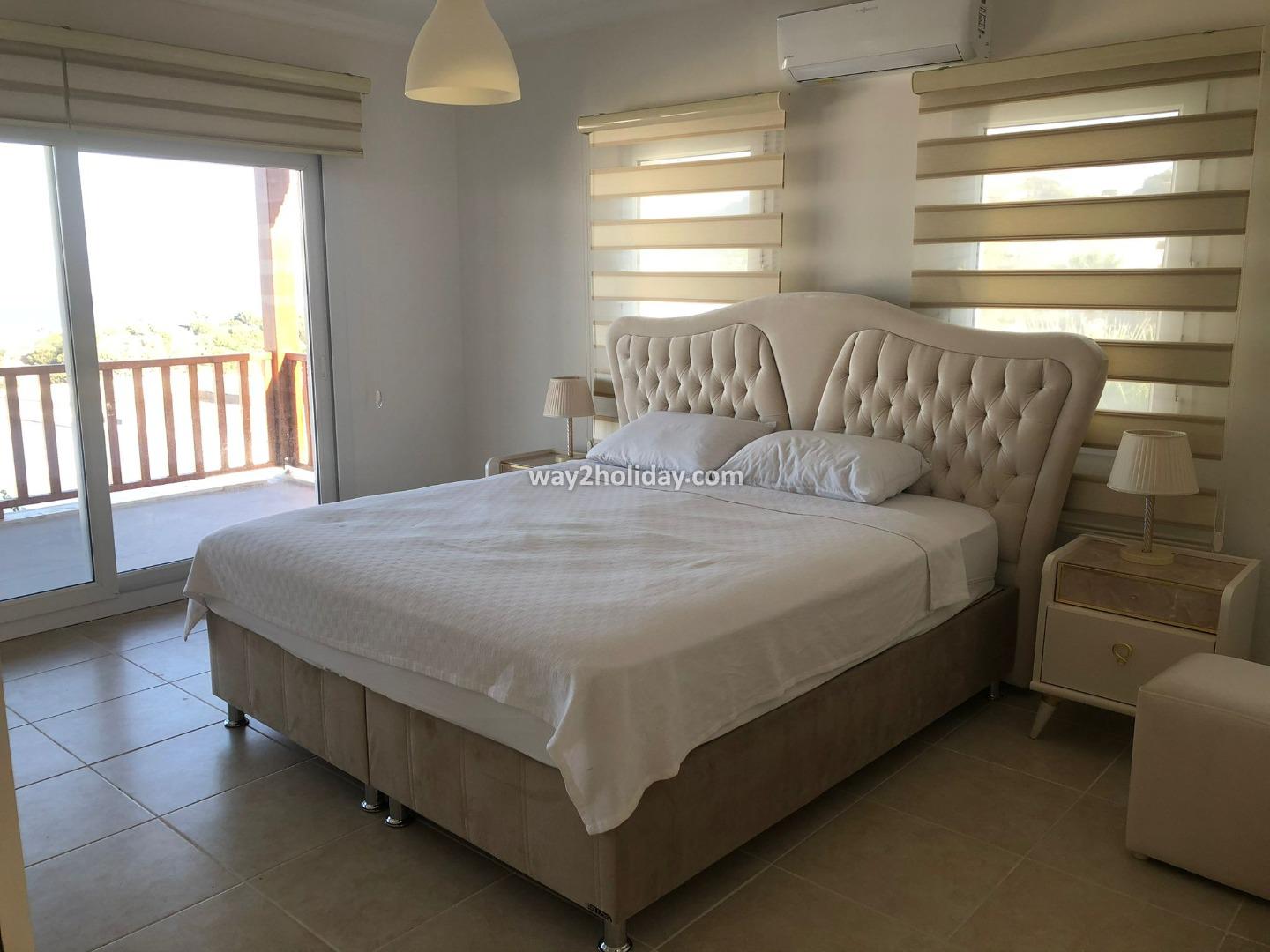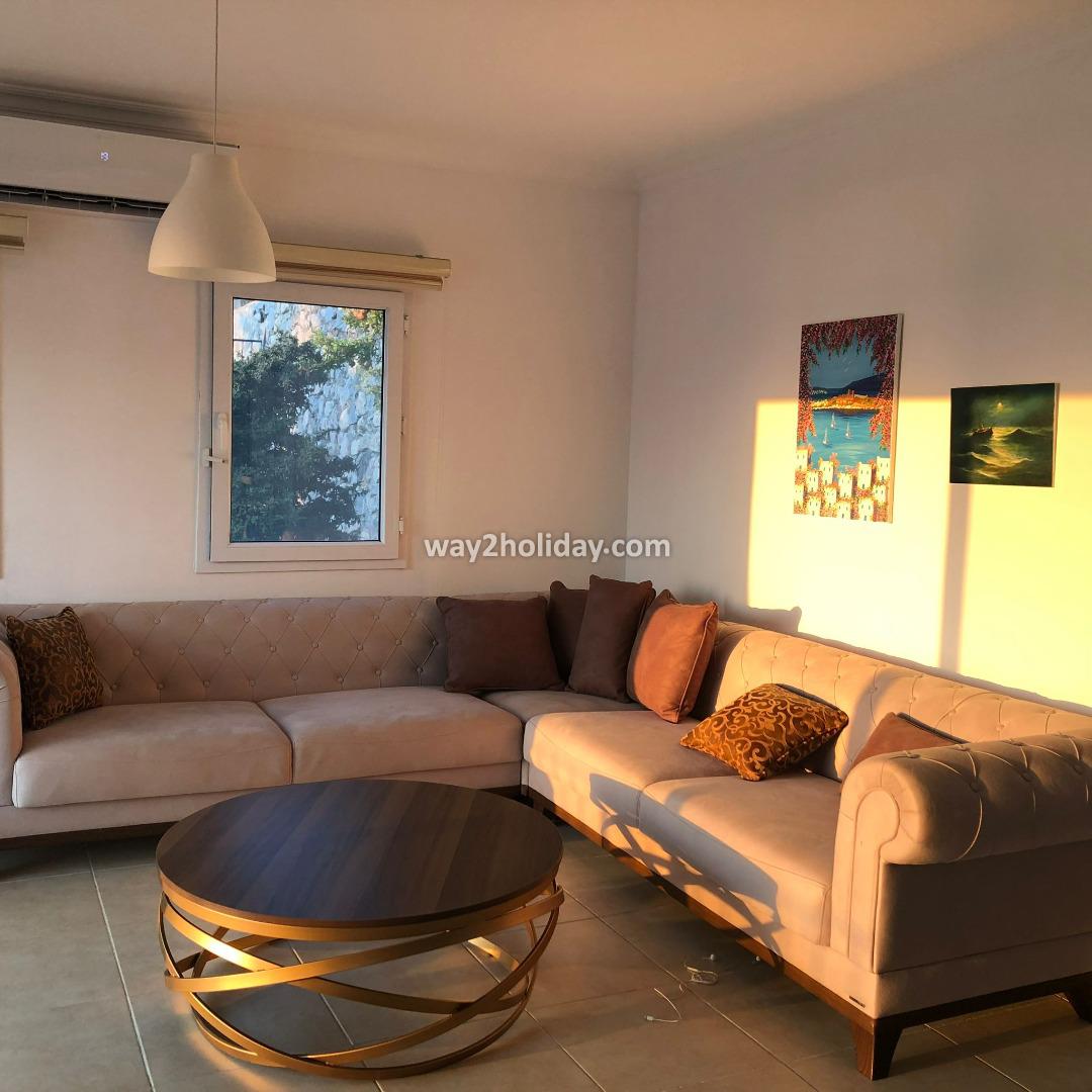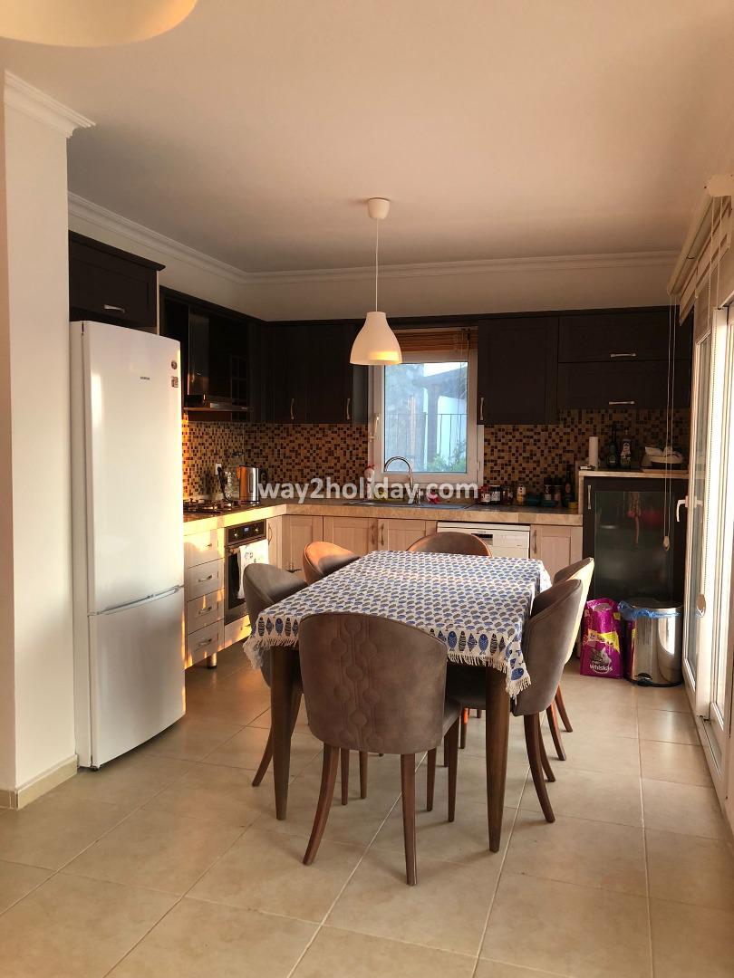 Located within a gated community in Gümüşlük Koyunbaba, this duplex villa boasts stunning views of the islands of Kalymnos and Leros.