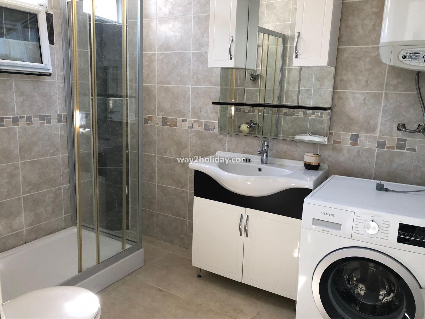 Upstairs, you'll find a master bedroom with an en-suite bathroom (with a double bed), a shared bathroom, and another room that can accommodate two people.