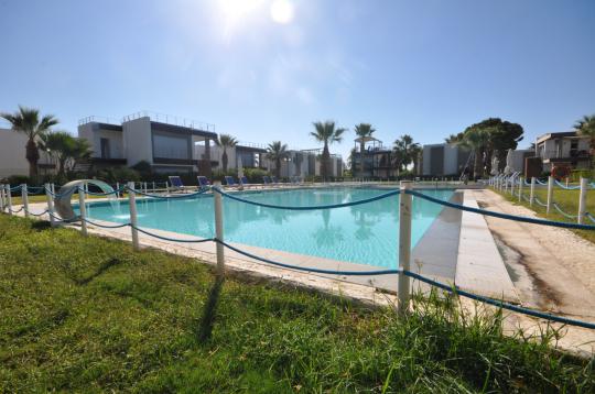 The 2 bedroom apartments are located on a compound with shared pool which is right on the sea front. There is also a wooden deck on the seafront for the sole use of the this compound which has direct access if you want to cool off and go for a swim in the sea. The sandy beach is also right on your doorstep with plenty of free sunbeds as long as you have a bite to eat or drink from the corresponding restaurant. An ideal location for a laid-back holiday.