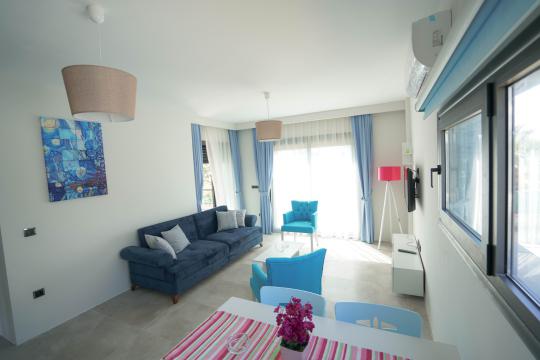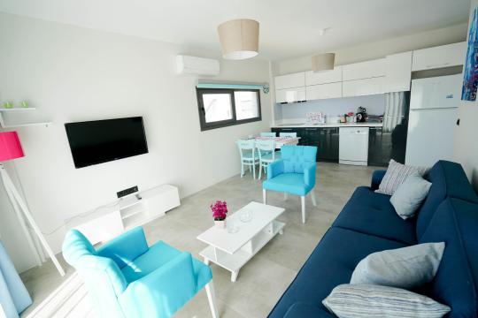 Excellent location in the heart of Ortakent, only 200m to the beach and an easy level walk along the beach front of Ortakent to all the bars and restaurants. With modern furniture and design these 2 bedroom apartments are ideal for couples of families looking for a comfortable stay. No need for a car. There is a sleeping capacity of 5 guests.