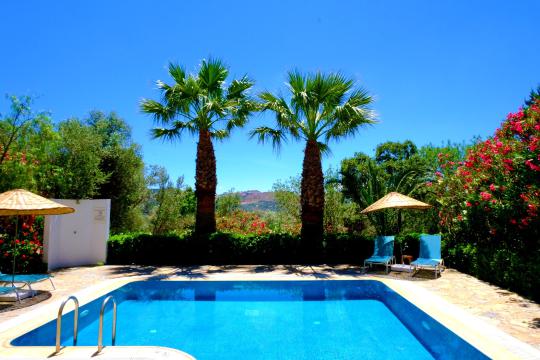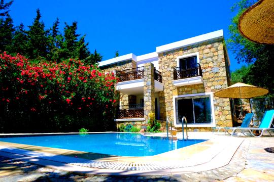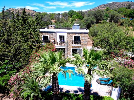 Surrounded by beautiful countryside, Villa Begonvil enjoys wonderful views across to the hills in the distance. Located in Derekoy are of Gumusluk Bodrum this 2 bedroom villa has all you need for a wonderful Turkish holiday. A lovely, lush garden as well as your own private pool is the perfect oasis for you to simply relax. You’ll be within a 10 minute drive from Derekoy village with a selection of shops, restaurants and a the beaches of Ortakent or Gumusluk are a 15 minute drive. There is WiFi and air conditioning/heating.