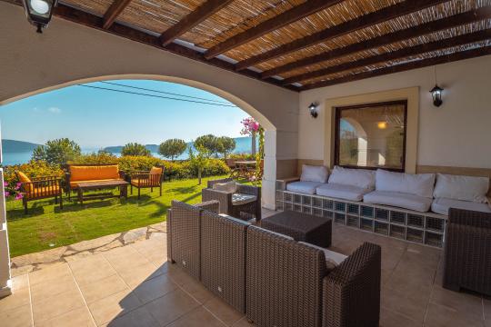 Villa Cumba has wonderful views of the sea from its position, perched in the hillside above the bay. There is a local supermarket and bakery, and a small restaurant all within 10 minutes on foot. The centre of Gundogan is a local minibus ride or 7 minute car journey away with excellent selection of beach front restaurants and cafes aswell as quaint harbour and sandy beach. There is a fantastic communal infinity pool which is is great for relaxing while absorbing the remarkable panorama. There is WiFi and air conditioning.