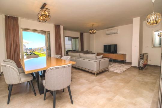 The pool terrace offers the perfect spot to relax and admire the stunning views, in between refreshing dips in your own private pool. After a lazy day, why not rustle up your favourite Turkish food and dine alfresco? Just off the pool area is a covered terrace with rattan furniture - a great place to relax with a cool drink. Steps to one side of the villa lead up to the first floor terrace with a second balcony with dining group