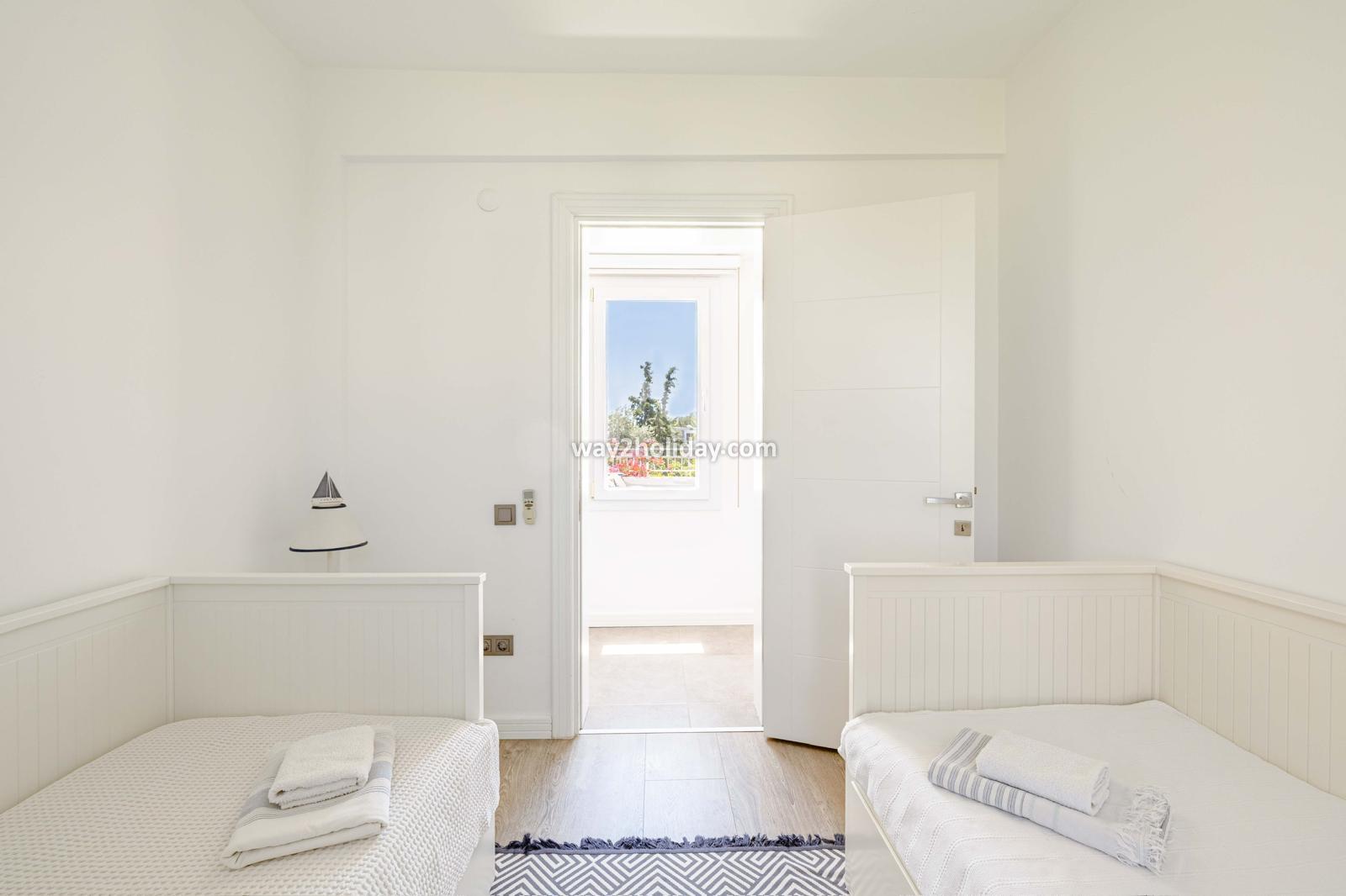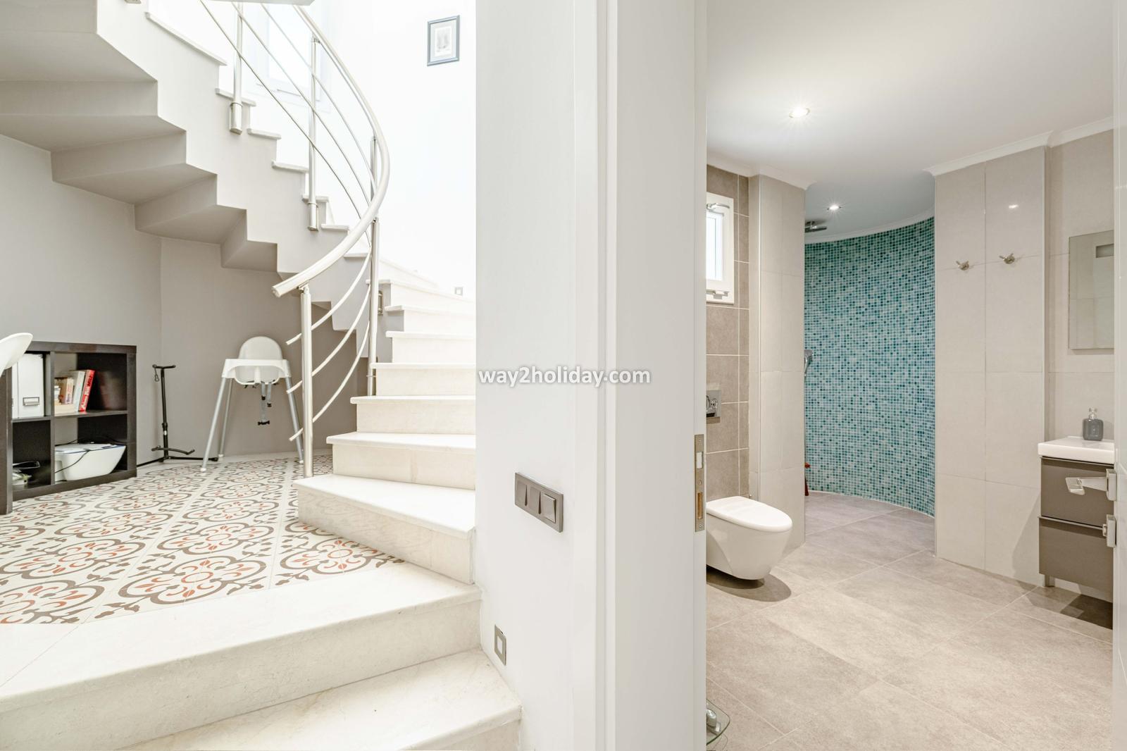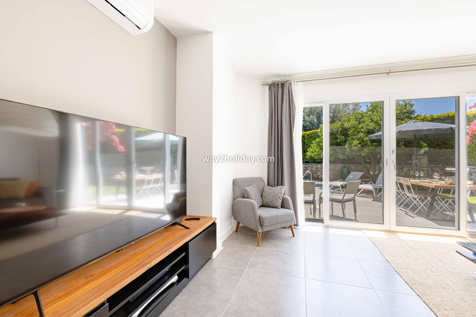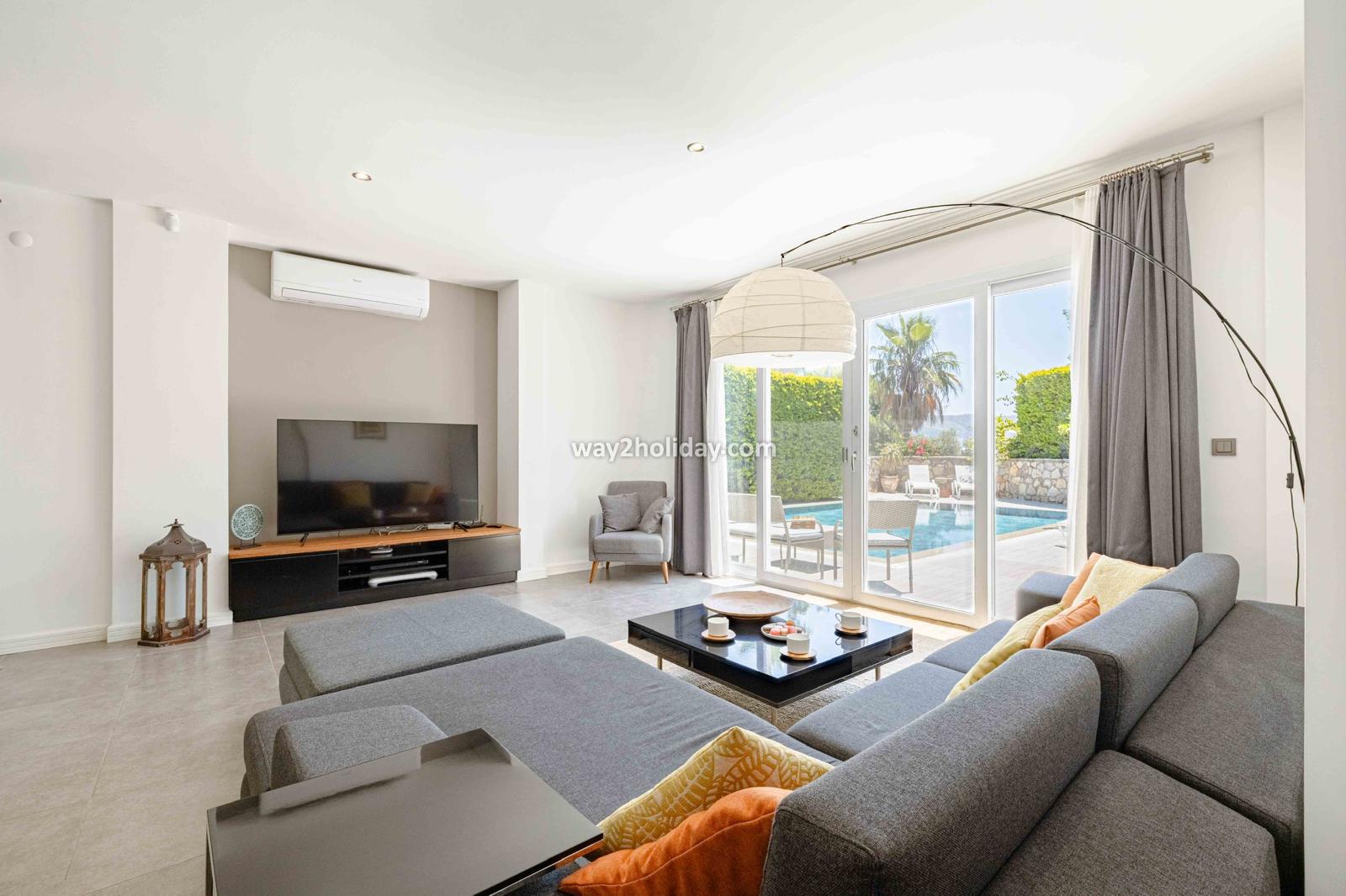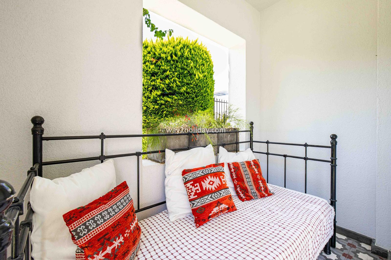 Villa White House, a fully detached villa in a gated community away from the noise in Bodrum Center, awaits you for an unforgettable Bodrum holiday. The villa is approximately 1.5 km from Bodrum Marina and 3-4 minutes by car from markets, restaurants, Bodrum Bazaar and shops. Upon entering our duplex villa, you are greeted by a spacious living room and open kitchen. Both areas have access to the large garden and poolside. This floor also includes a bedroom with a double bed, a shared bathroom and a work desk. Upstairs, a large terrace with a seating area awaits you. This floor has 3 bedrooms, one with an en-suite bathroom, and a shared bathroom. With a total of 4 bedrooms and 3 bathrooms, our villa accommodates 8 people.