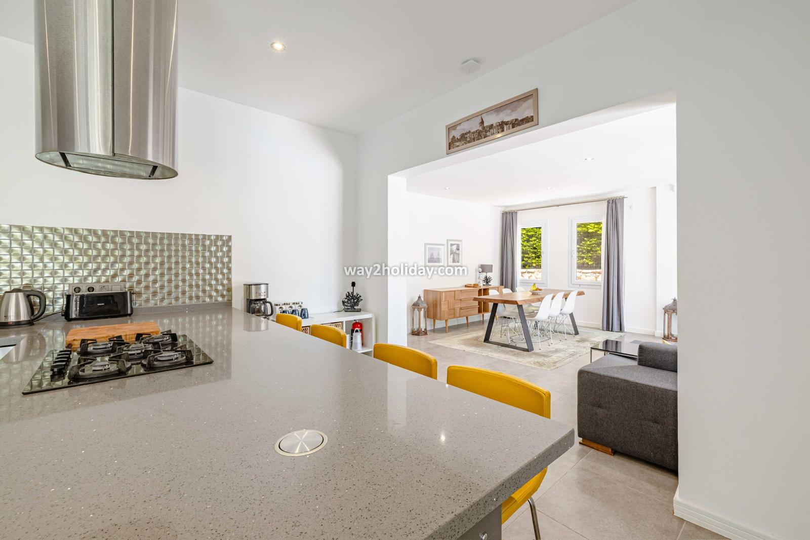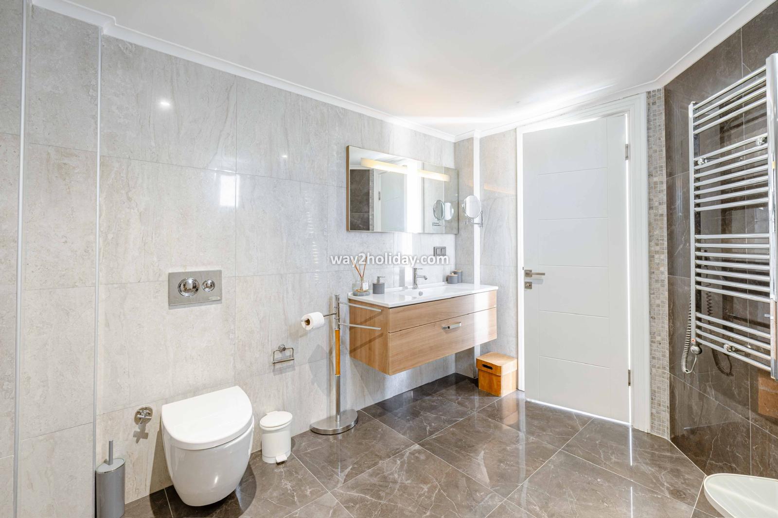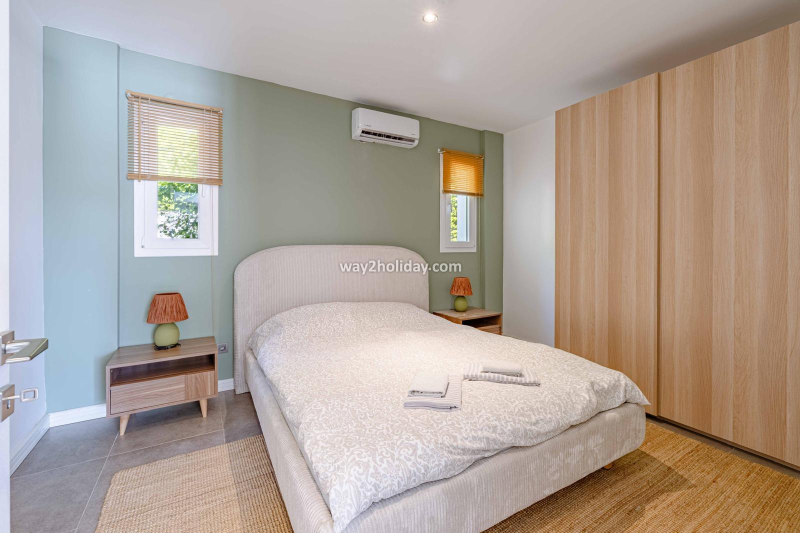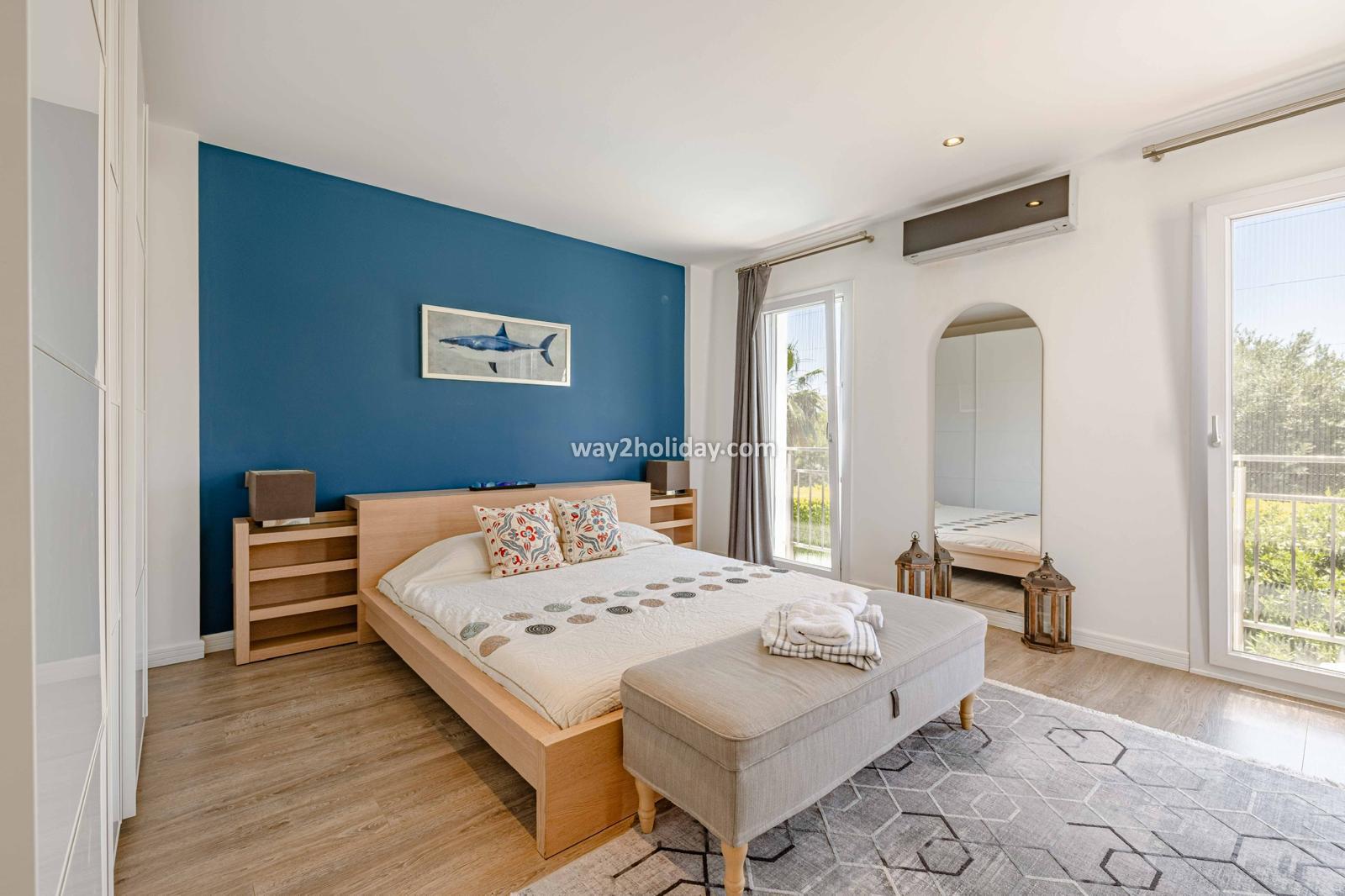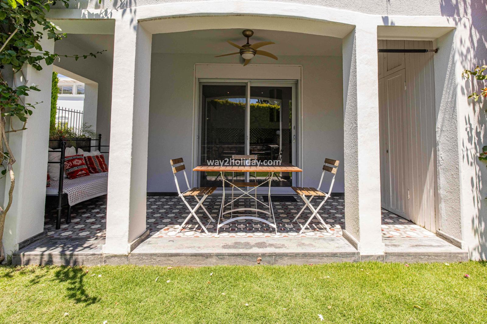 Villa White House, a fully detached villa in a gated community away from the noise in Bodrum Center, awaits you for an unforgettable Bodrum holiday. The villa is approximately 1.5 km from Bodrum Marina and 3-4 minutes by car from markets, restaurants, Bodrum Bazaar and shops. Upon entering our duplex villa, you are greeted by a spacious living room and open kitchen. Both areas have access to the large garden and poolside. This floor also includes a bedroom with a double bed, a shared bathroom and a work desk. Upstairs, a large terrace with a seating area awaits you. This floor has 3 bedrooms, one with an en-suite bathroom, and a shared bathroom. With a total of 4 bedrooms and 3 bathrooms, our villa accommodates 8 people.